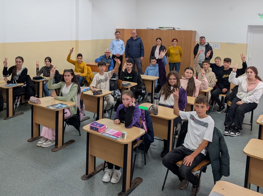 Bild unten: Zu Besuch in der Abschlussklasse der "Scoala Gimnaziala" in Valea Canepii.