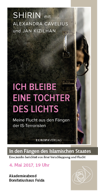 Die junge Jesidin Shirin hatte gerade ihr Abitur abgelegt und wollte im Irak Jura mit dem Schwerpunkt Frauenrechte studieren, als IS-Milizen ihr Heimatdorf im nordirakischen Sindschar-Gebiet überfielen. Mit ihrer Familie und anderen jesidischen Dorbewohnern wurde sie im August 2014 ins Gebiet des sogenannte „Islamischen Staates“ verschleppt und fast ein Jahr lang als Sklavin gehalten. Terroristen des IS misshandelten und vergewaltigten sie und andere Frauen und verkauften sie untereinander weiter. Neun mal wurde Shirin auf diese Weise verkauft. Erst nach neun Monaten gelang ihr die Flucht ins autonome Kurdengebiet, von wo aus sie über ein Hilfsprogramm nach Baden-Württemberg reisen konnte. Das Schicksal und der Verbleib ihrer Mutter und ihrer Geschwister ist bis heute nicht geklärt. Bis heute sind noch etwa 3500 Mädchen und Frauen in der Gewalt von IS-Kämpfern, die sie zwingen, zum Islam zu konvertieren, sie als ihr persönliches Eigentum betrachten und als Haussklaven demütigen und missbrauchen. Ihre Geschichte hat Shirin mit Unterstützung der Journalistin Alexandra Cavelius und des Psychologen Prof. Dr. Jan Kizilhan aufgeschrieben und als Buch unter dem Titel „Ich bleibe eine Tochter des Lichts“ veröffentlicht.
